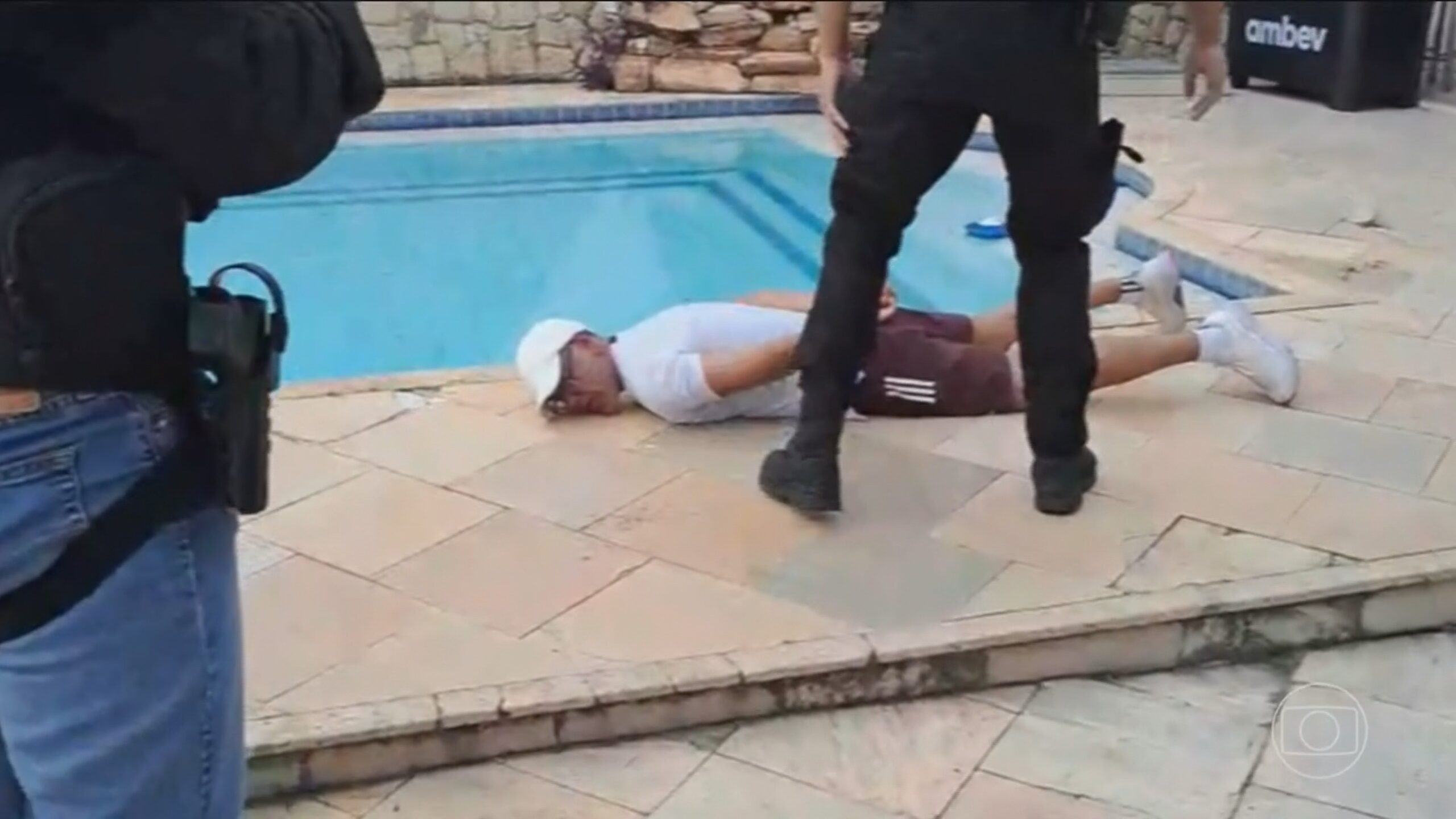 Algemado, de bruços, à beira da piscina de uma mansão em Cabo Frio, na Região dos Lagos. Adilson Oliveira Coutinho Filho estava foragido há um ano e três meses. Ele é apontado pelas polícias Federal e Civil como um dos bicheiros mais perigosos do Rio. Os agentes prenderam o contraventor enquanto ele se exercitava no quintal da casa, acompanhado de um policial militar que fazia sua segurança.