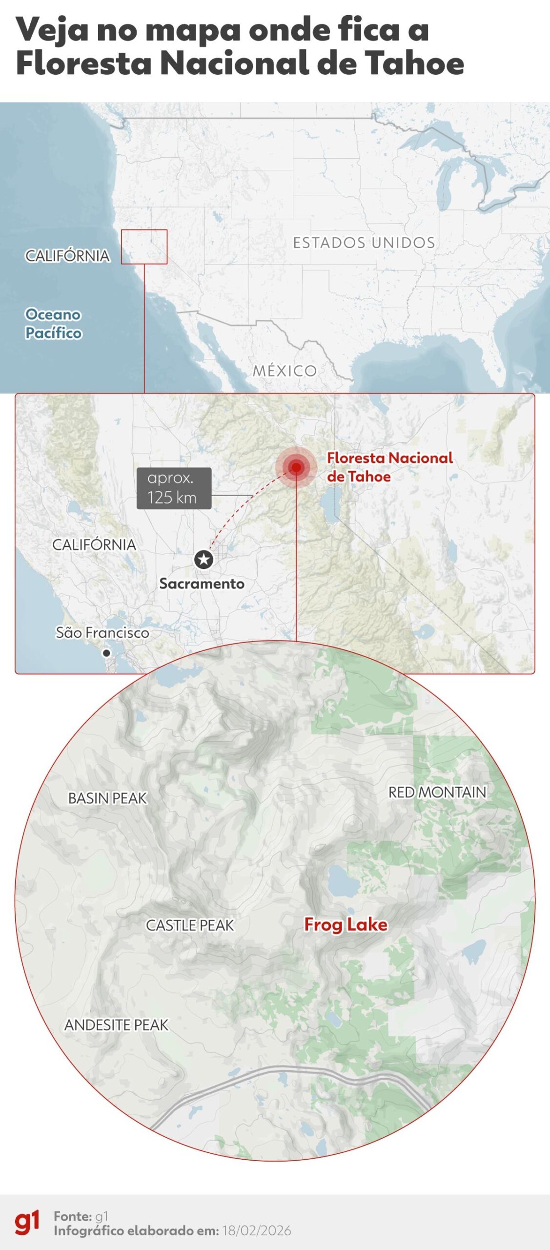 VALE: infográfico mostra local onde esquiadores desapareceram após avalanche na Califórnia, nos EUA — Foto: Editoria de Arte/g1