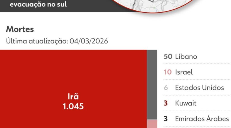 Read MoreINFOGRÁFICOS: Mortes passam de mil no Irã, e Israel amplia ofensiva no Líbano 📅 05/03/2026 08:07 📰 Fonte: Geral –