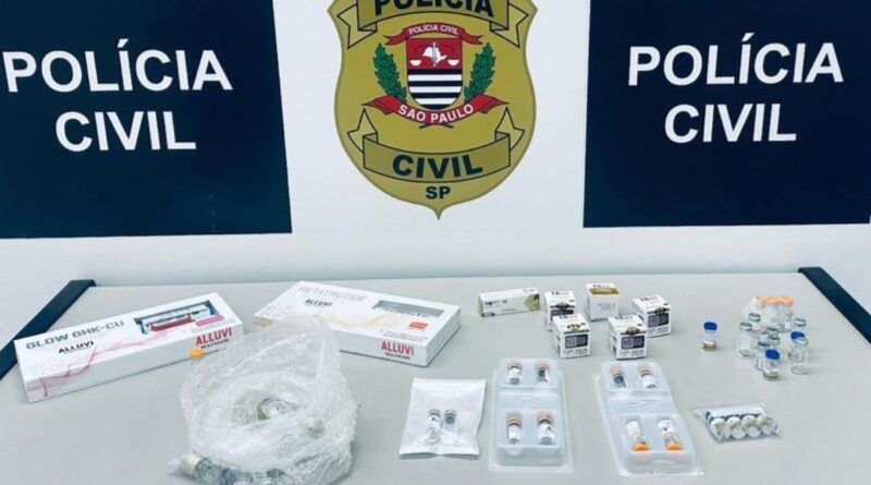 No local, foram encontrados e apreendidos medicamentos contendo a substância tirzepatida – o princípio ativo é o usado em canetas emagrecedoras, e segundo a Polícia Civil, seria fruto de contrabando via o Paraguai.