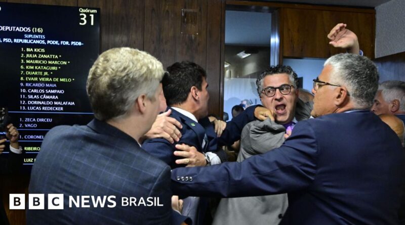 Depois da aprovação, parlamentares chegaram a entrar em confronto e houve empurra-empurra.