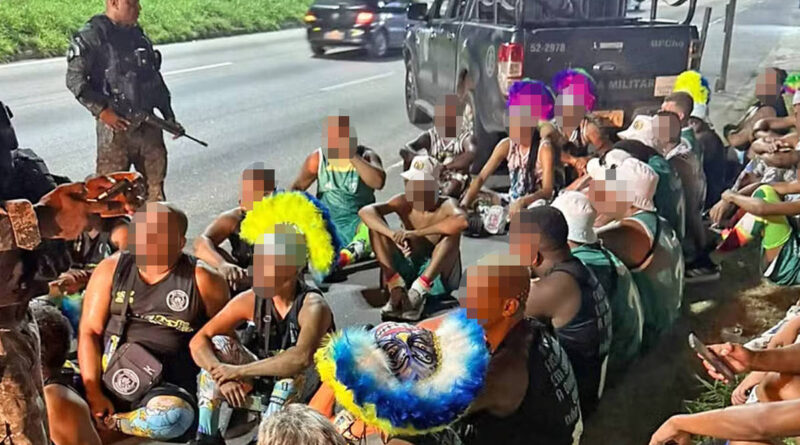 Um grupo com 61 pessoas fantasiadas de bate-bolas foi detido na noite desta segunda-feira (16) pela Polícia Militar na avenida Brasil, no Rio de Janeiro, quando se dirigia para o Complexo da Penha, na zona norte.
