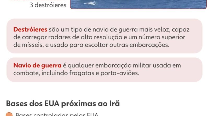 👉 Veja no infográfico a seguir onde ficam as embarcações e em quais locais há soldados norte-americanos.