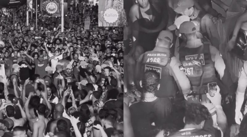 Vídeos publicados nas redes sociais mostram o momento em que os policiais militares entram no meio da roda, na tentativa de impedir que as pessoas pulassem (veja vídeo abaixo).