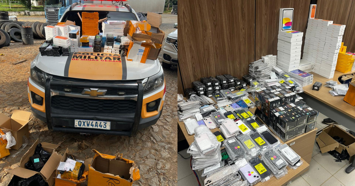 Os militares conferiram as notas e fizeram uma vistoria nas mercadorias encontrando diversos itens, como iphones, canetas emagrecedoras, cigarros eletrônicos, celulares de marcas diversas, e demais eletrônicos sem notas fiscais.