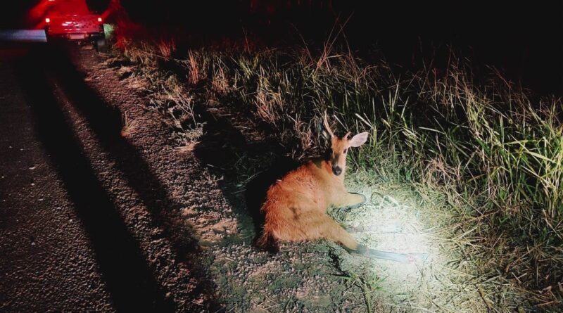 Polícia Ambiental resgata cervo-do-pantanal atropelado em estrada vicinal em Panorama