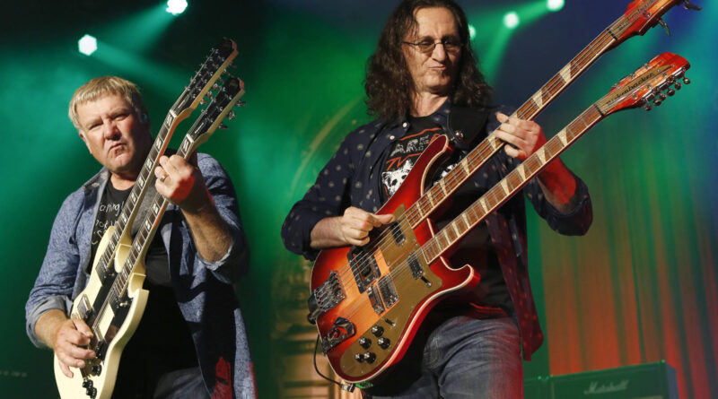Alex Lifeson, à esq., e Geddy Lee, da banda Rush –