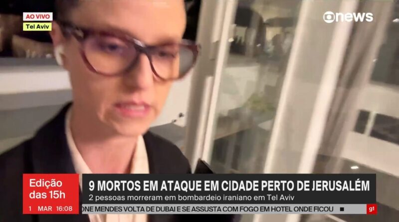A repórter Danuza Mattiazzi, da Globonews, que vive em Tel Aviv, capital de Israel, precisou se abrigar em um quarto de segurança enquanto estava ao vivo neste domingo (1º).